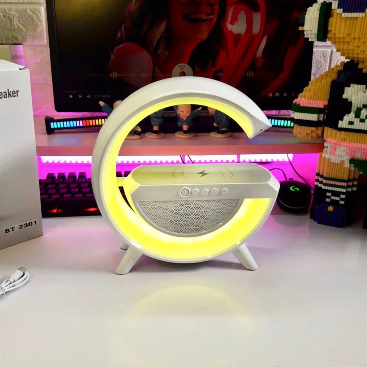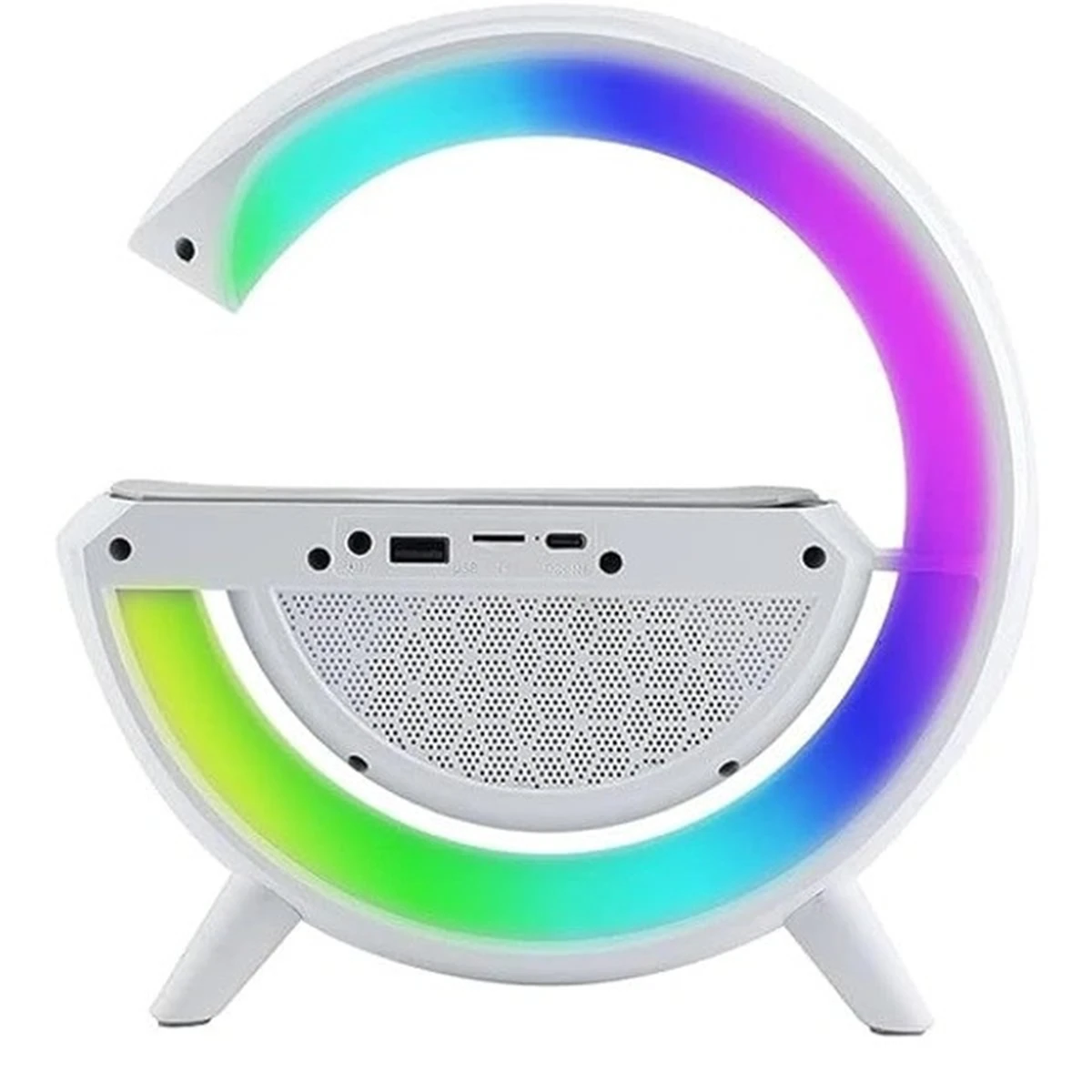 سایر مشخصات : دارای شارژر بی سیم چند منظوره - دارای بلندگوهای یکپارچه همراه با نور LED - دارای نور RGB همگام سازی موسیقی - سازگار با گوشی های هوشمند، بلندگوها، ساعت های هوشمند - دارای پایه رومیزی و یک پورت USB